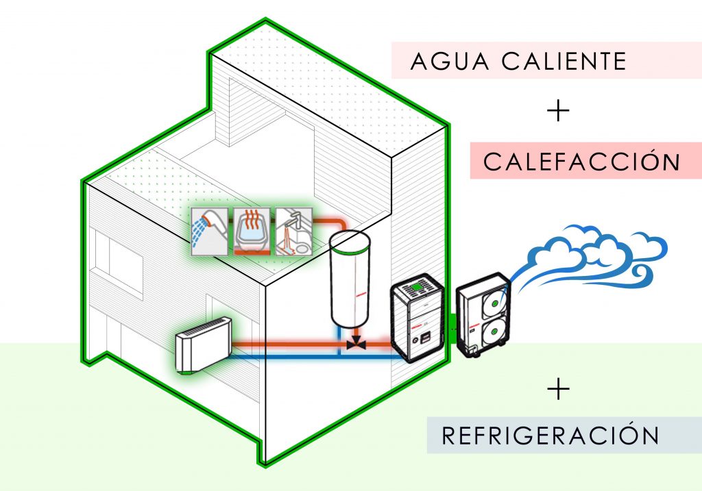 Es el sistema perfecto y ejemplar para calentar y refrigerar viviendas, así como también en suministro de agua caliente sanitaria (ACS).